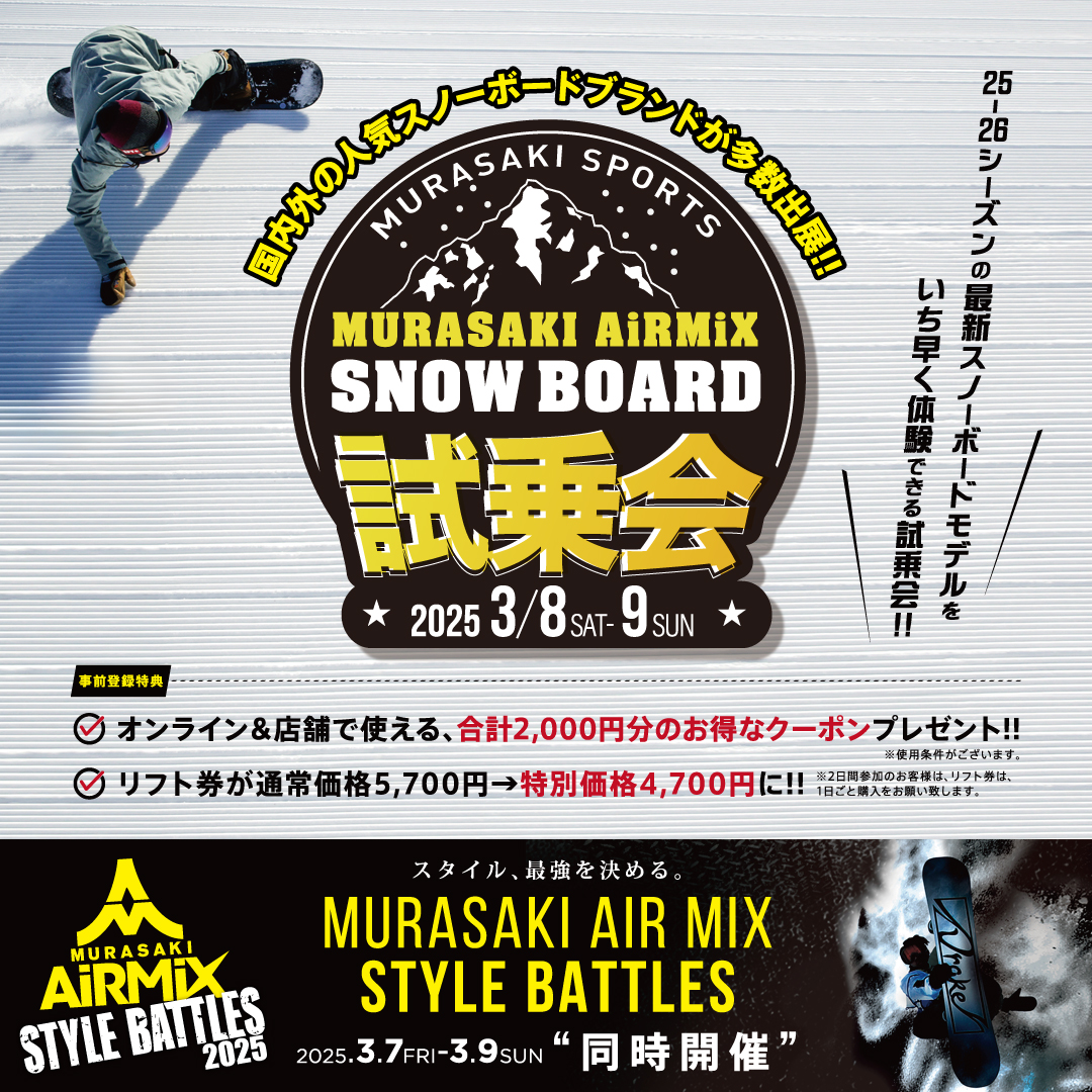 FEATURE 特集 FASHION SURF SNOW SKATE OTHER 件 サーフィン ファッション スケートボード スノーボード other スノーボードにおすすめ!おしゃれなビーニー / ニット帽 2025/10/06 【一部店舗 | 数量限定】ブランドコラボ ビーチタオル プレゼント! 2025/09/12 冬コーデは【帽子】で楽しもう!2024おすすめキャップ / ニット帽 2025/08/15 古着、はじめました。| 一部店舗にてリユース・アイテム取扱開始! 2025/07/31 SUPフィッシングを楽しむためには?【基礎知識 / 用具】 2025/07/31 【終了】人気ブランド多数!25-26シーズンの最新スノーボードをいち早く体験できる『MURASAKI AIR MIX SNOWBOARD 試乗会』 2025/07/28 【終了】今年も開催! ムラサキスポーツ×ブリサマリーナ『Surf&Battle Water Festa』 2025/07/28 【終了】プロサーファーと一緒にサーフィンができる!SURFING FIRST CHALLENGE!! 2025/07/28 NSDキッズプログラム シーズンパス ¥1,500で滑り放題! 2025/07/28 【終了】【5/13(火) 19:30〜LIVE】 FOUNDNATION×ムラサキスポーツ コラボLIVE開催 2025/07/28 【終了しました】スノーボード お得に買うなら『ムラスノ』SUPER SALE!! 2026/02/26 総額100万円以上!優勝者を当ててウェットスーツをGET!!|優勝するのは誰だ!?キャンペーン 2026/03/17 272 1 ... 12 13 14